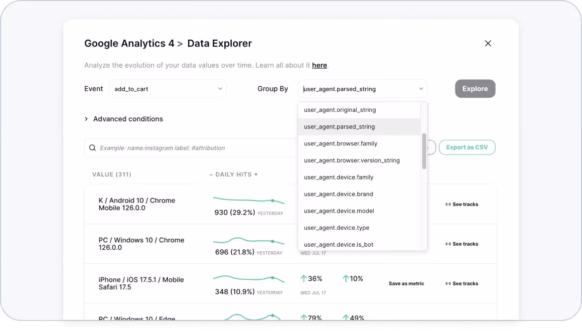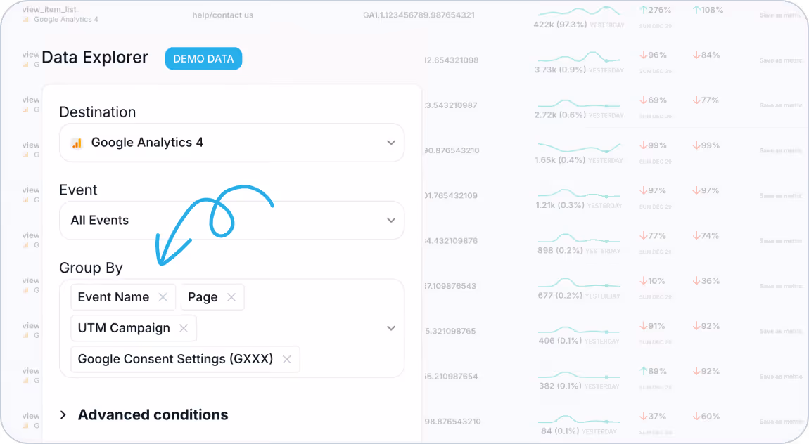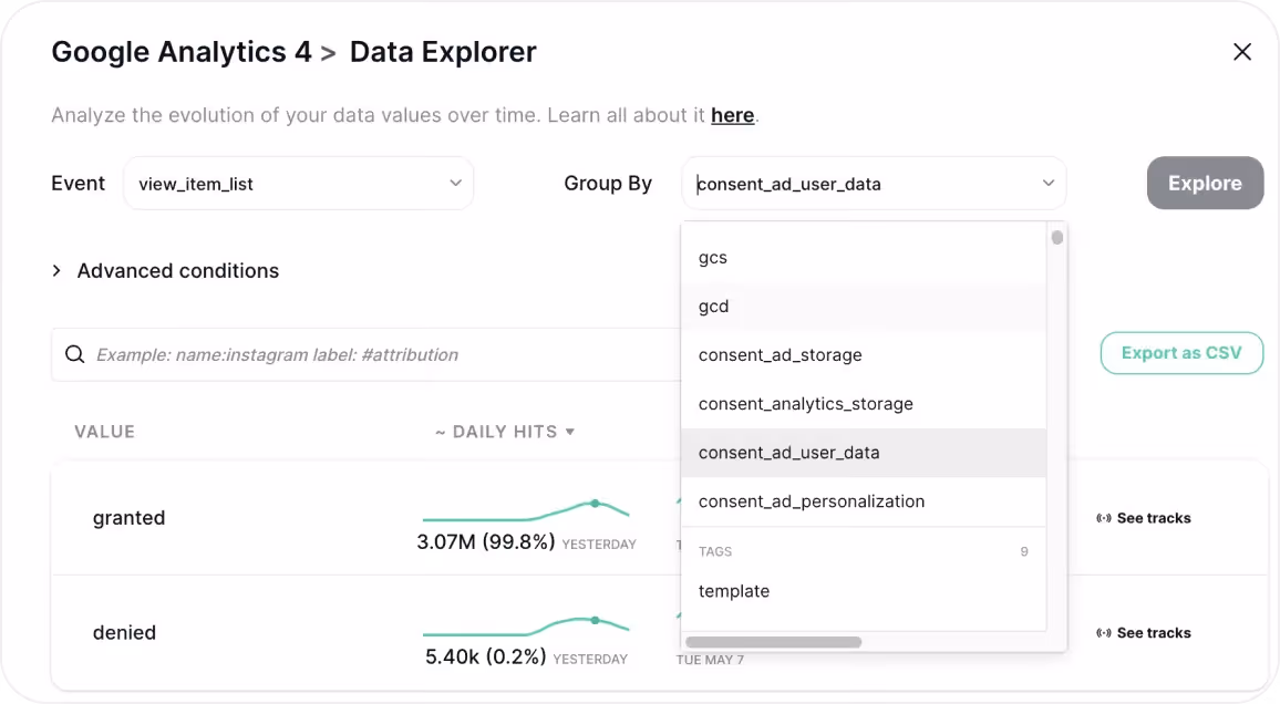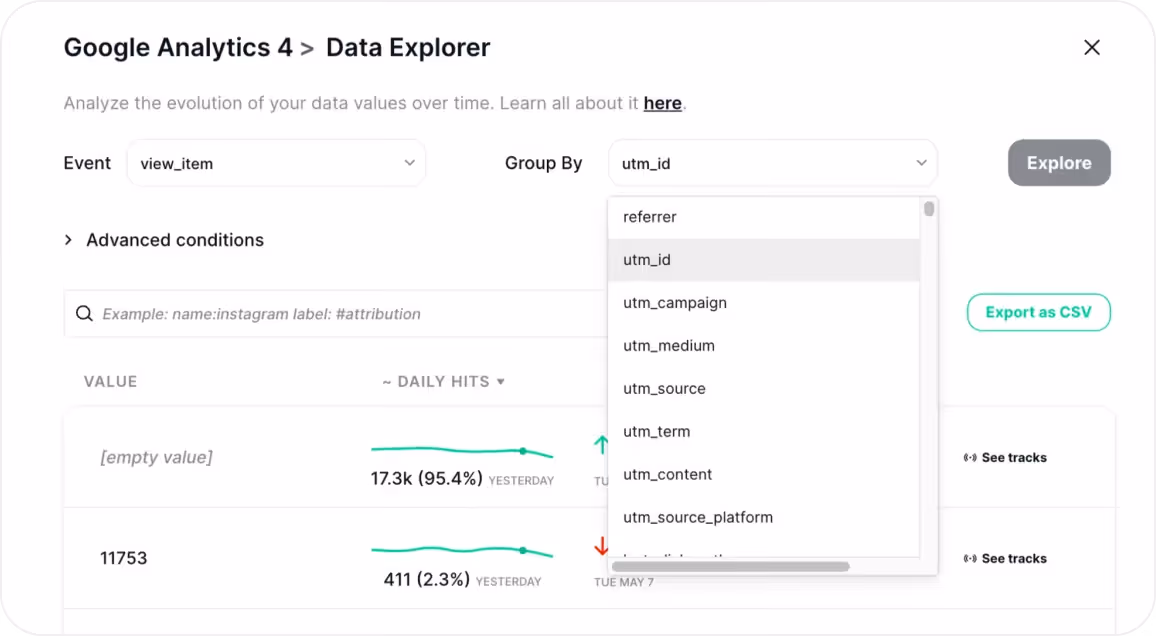 Now you can personalize your Data Explorer view by grouping your data by any of your attributions, UTMs, Consent Options, and DataLayer values.