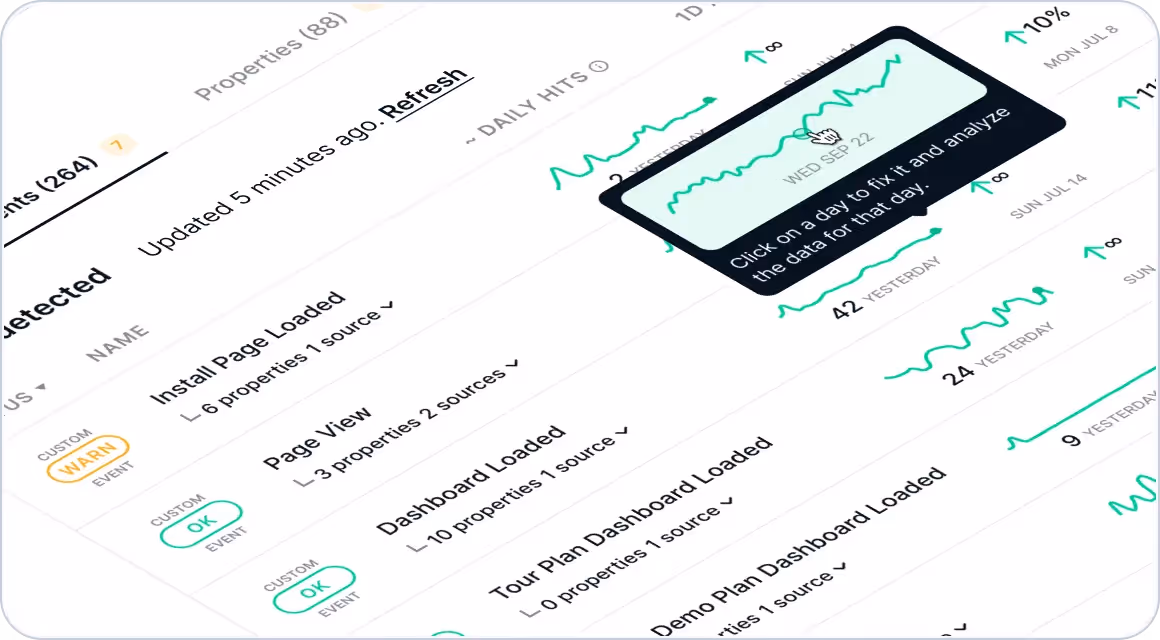 Say goodbye to waiting days to start playing with your custom events and metrics– with Trackingplan's Custom Events Backfilling, you can hit the ground running instantly.
