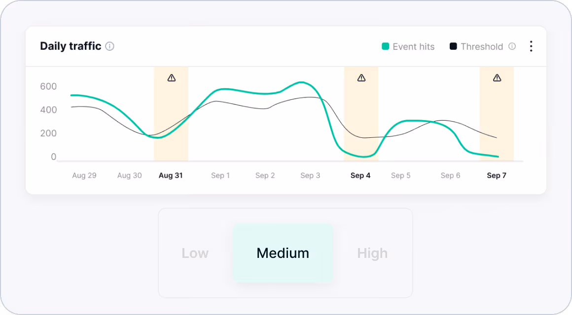 You can now customize the tolerance levels of your KPIs — giving you full control over when warnings are triggered for traffic drops, peaks, and missing values.