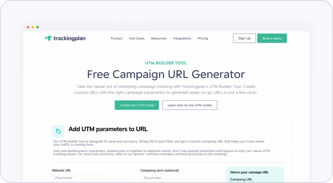 Creating perfect campaign URLs is now simpler than ever with Trackingplan’s UTM Builder Tool.