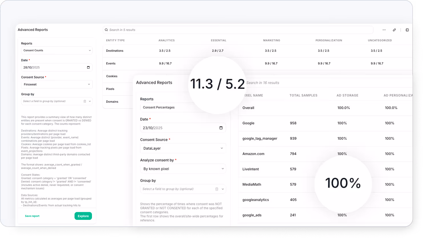 You can now break down the Consent Percentage Report in a much more actionable way to move from “is consent broken?” to “exactly where, how, and why.