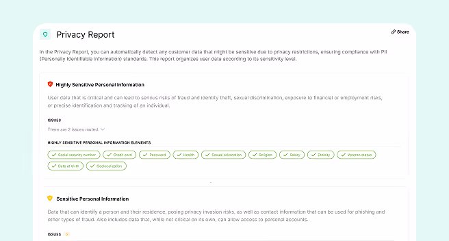 Trackingplan helps you stay ahead of accidental data leaks and PII exposure with continuous monitoring and instant alerts.