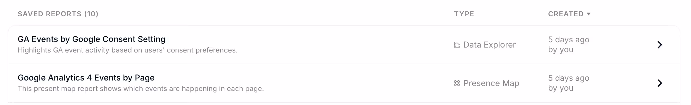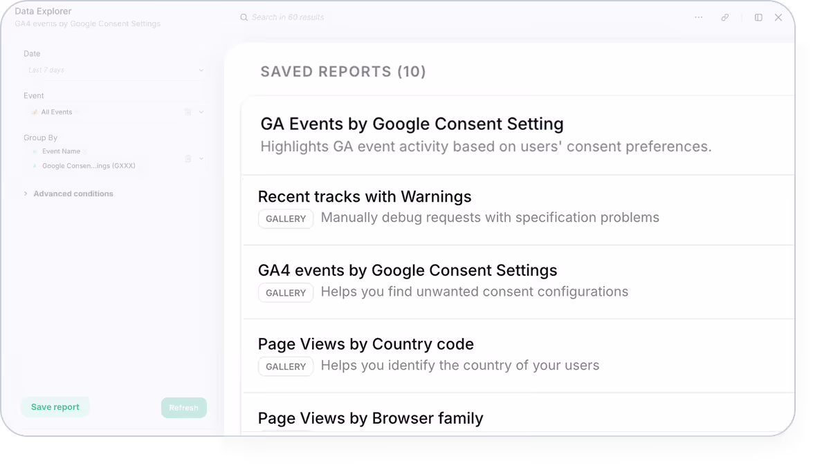 Whether you’re validating implementations, reviewing consent configurations, or tracking region-specific events, your reports can evolve with your work — and be shared with your team.