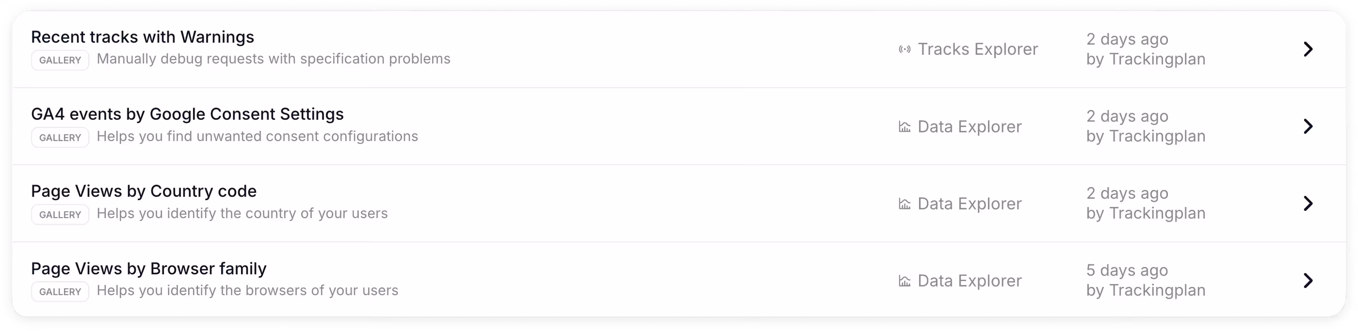 And because we know starting from scratch may sometimes be challenging, Trackingplan provides a set of default reports to make it easier to get started.