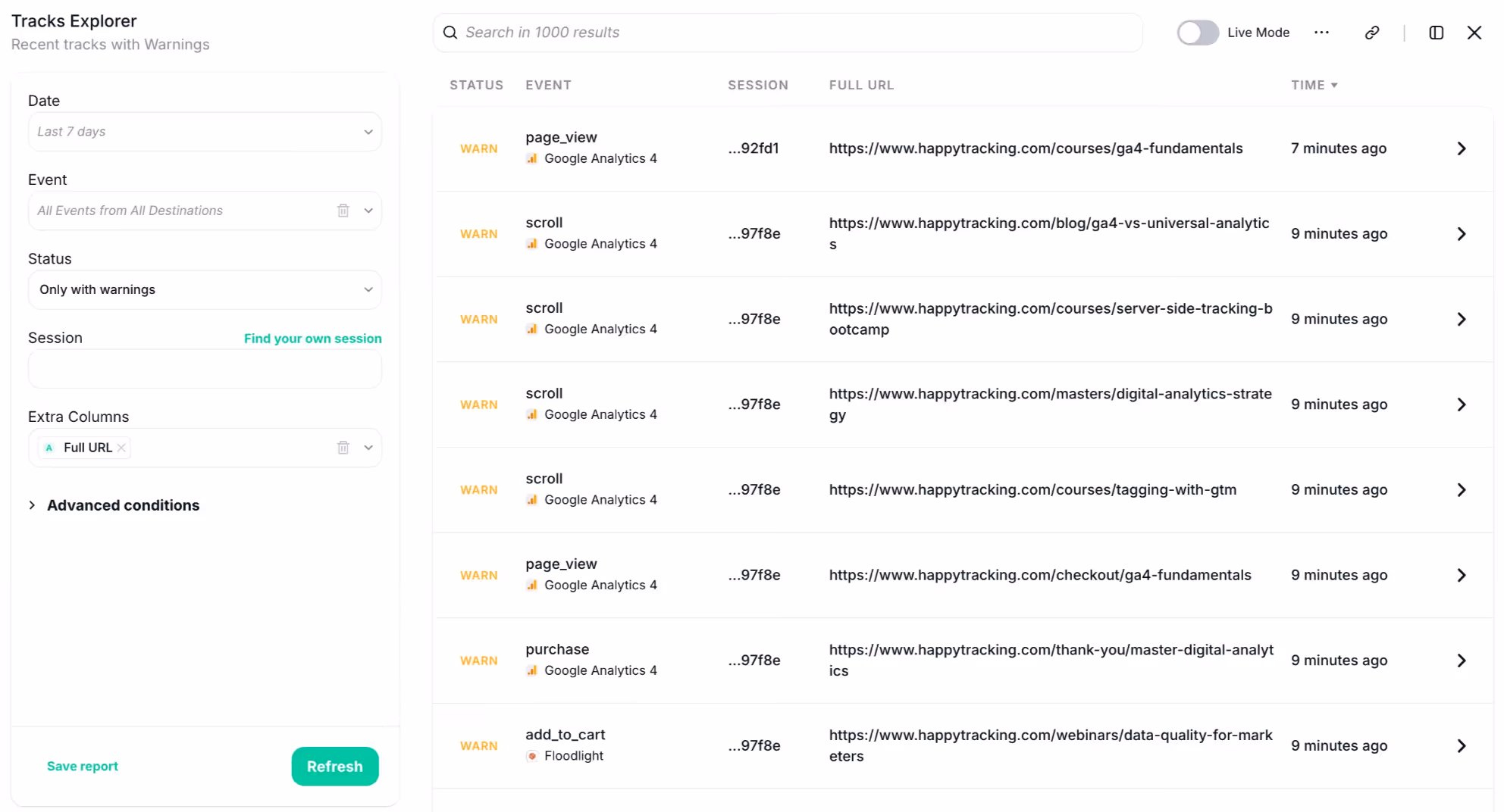 Say goodbye to rebuilding the same filters or digging through your notes to replicate your analyses. With Saved Reports, you can now save, organize, and share your custom report views across Trackingplan — so your best insights are always just a click away.