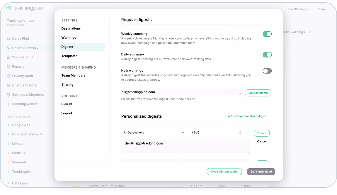 We’ve given Trackingplan’s Settings a fresh new look — with better organization, faster navigation, and a layout that’s easier on the eyes and your workflow.